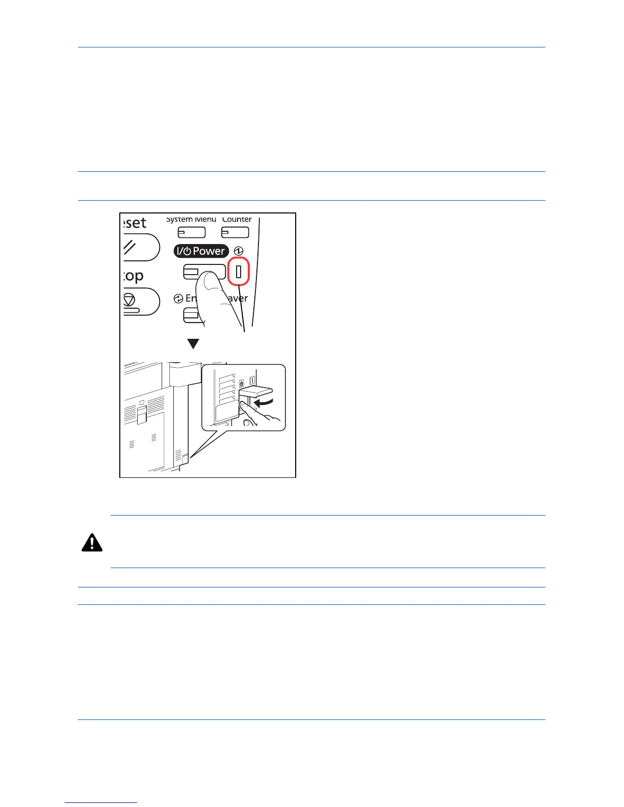 Before turning off the main power switch, press the Power key on the operation panel to off. Make sure that the