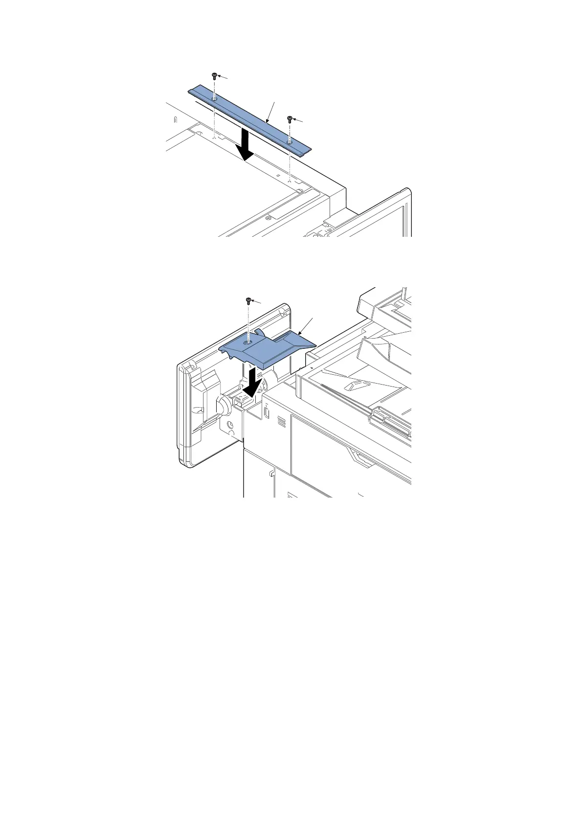 13. Reattach the ISU right cover (b) to the direction of the arrow in the original position with two screws (a)(M4×8).