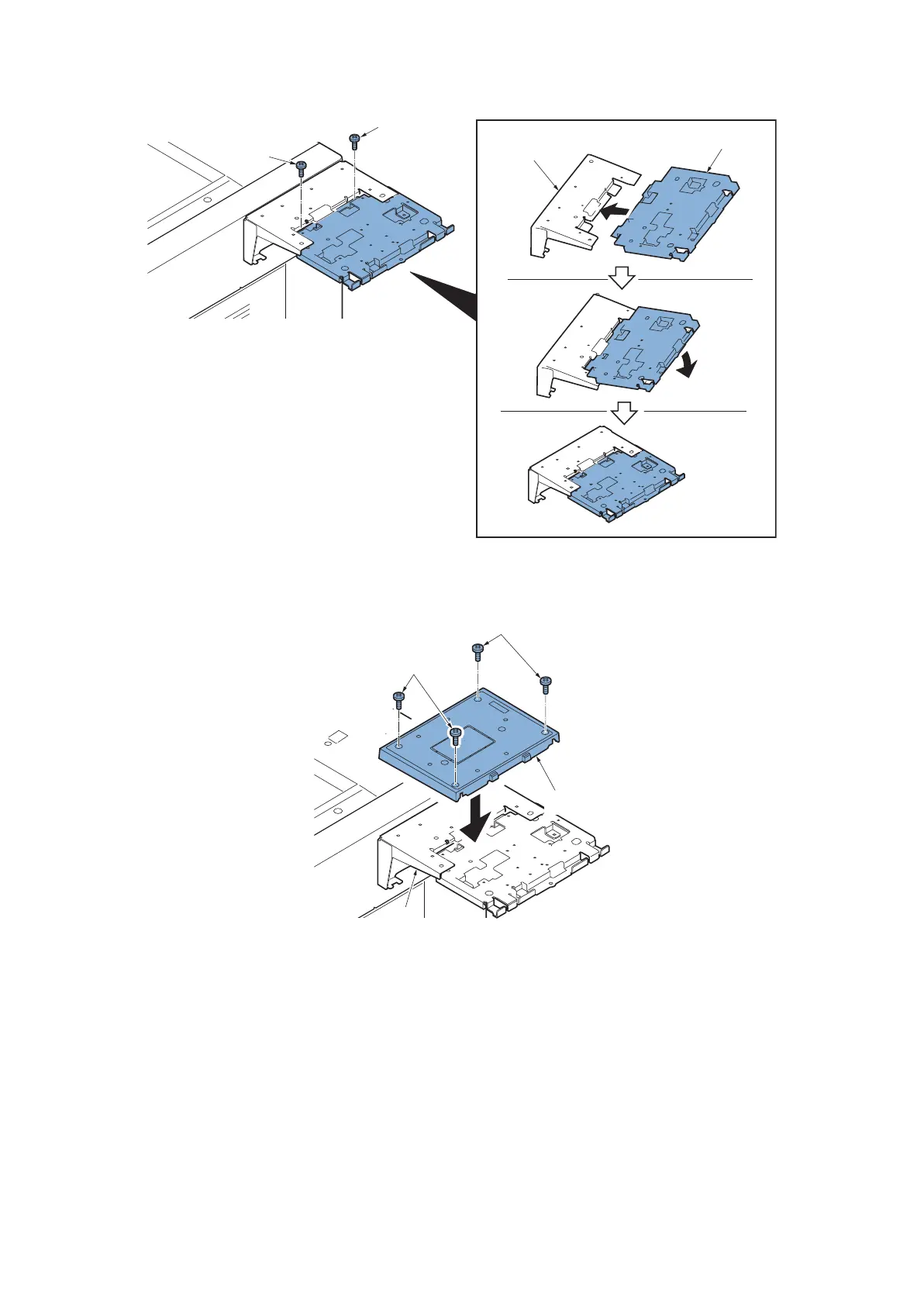 15. Insert the mounting plate (a) into the tray stay (B) and secure it with two screws (C) (M4×8).
