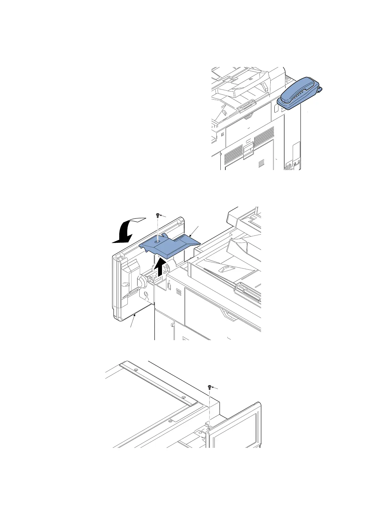 3. Remove one screw (b) (M3x8) and then remove the rear operation unit cover(c) in the direction of the arrow.