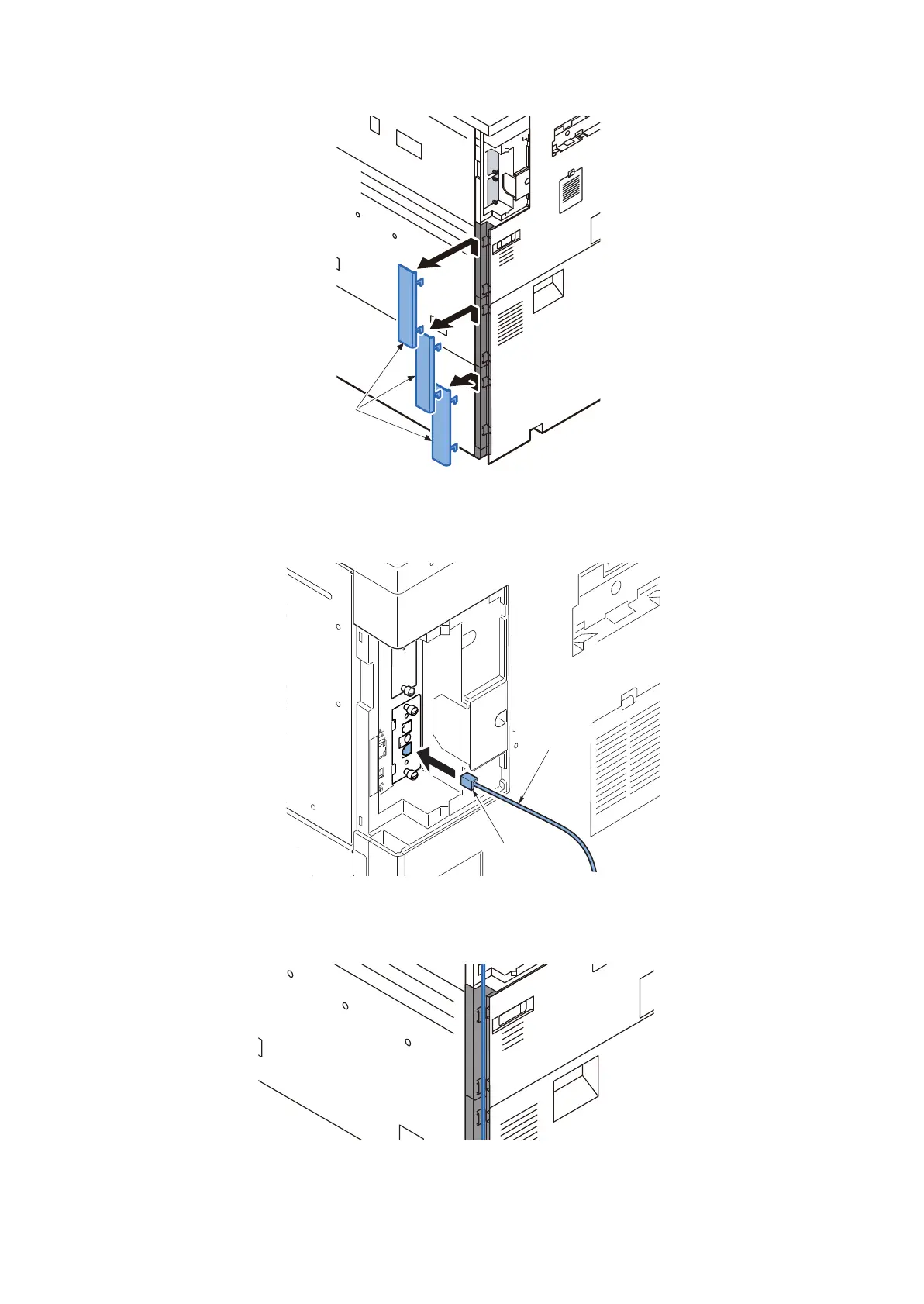 20. Connect one end of the connector (b) of the modular cord (a) to the machine left side.