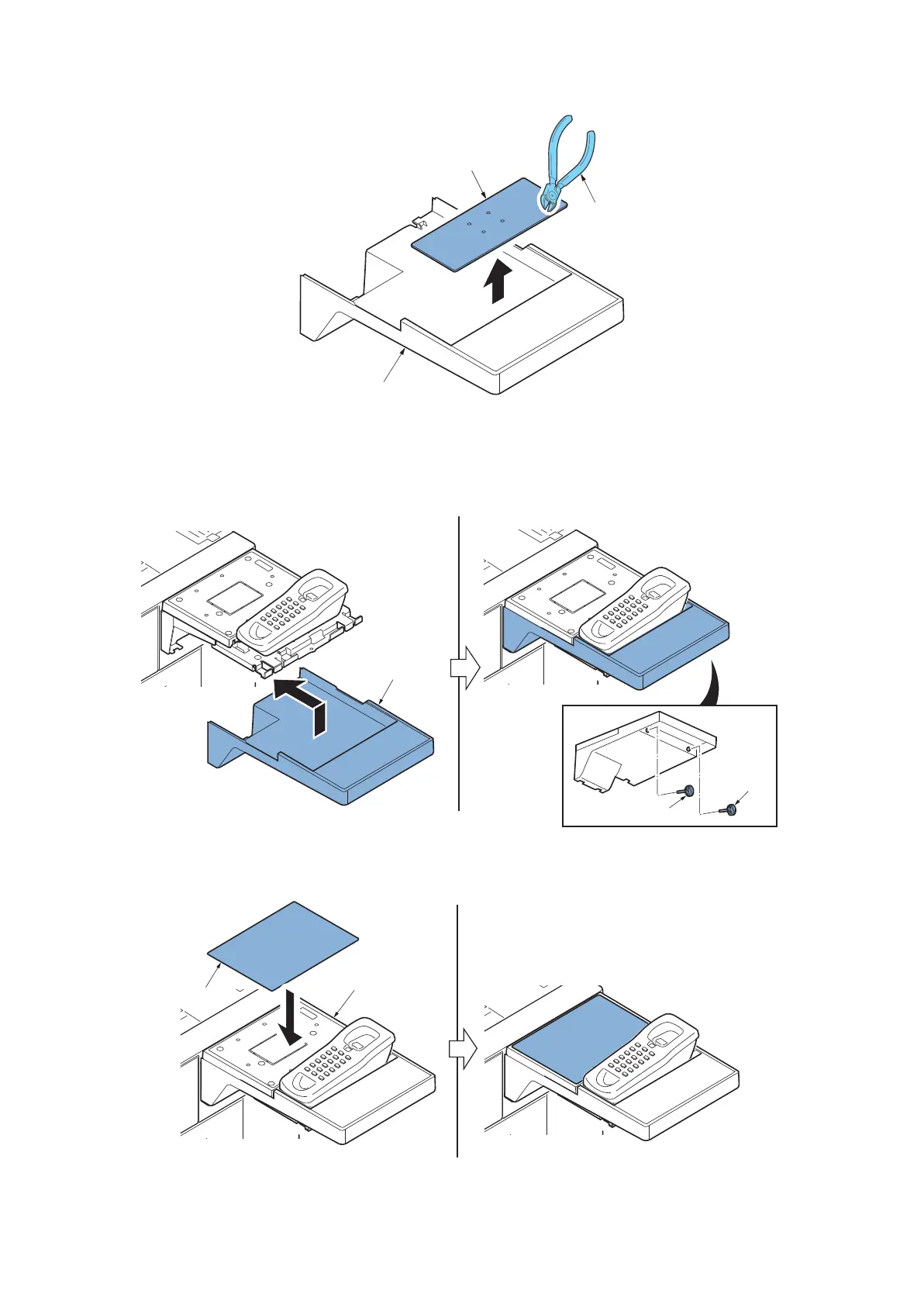 20. Cut the separator cover (b) of the tray lower cover (a) with nippers, etc.