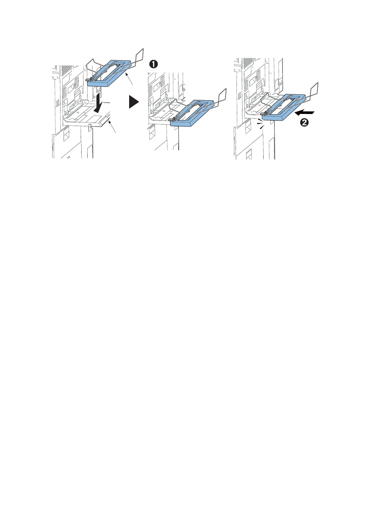 4. Put the banner tray (a) on the MP tray (b) and attach sliding in the direction of the arrow till locking.