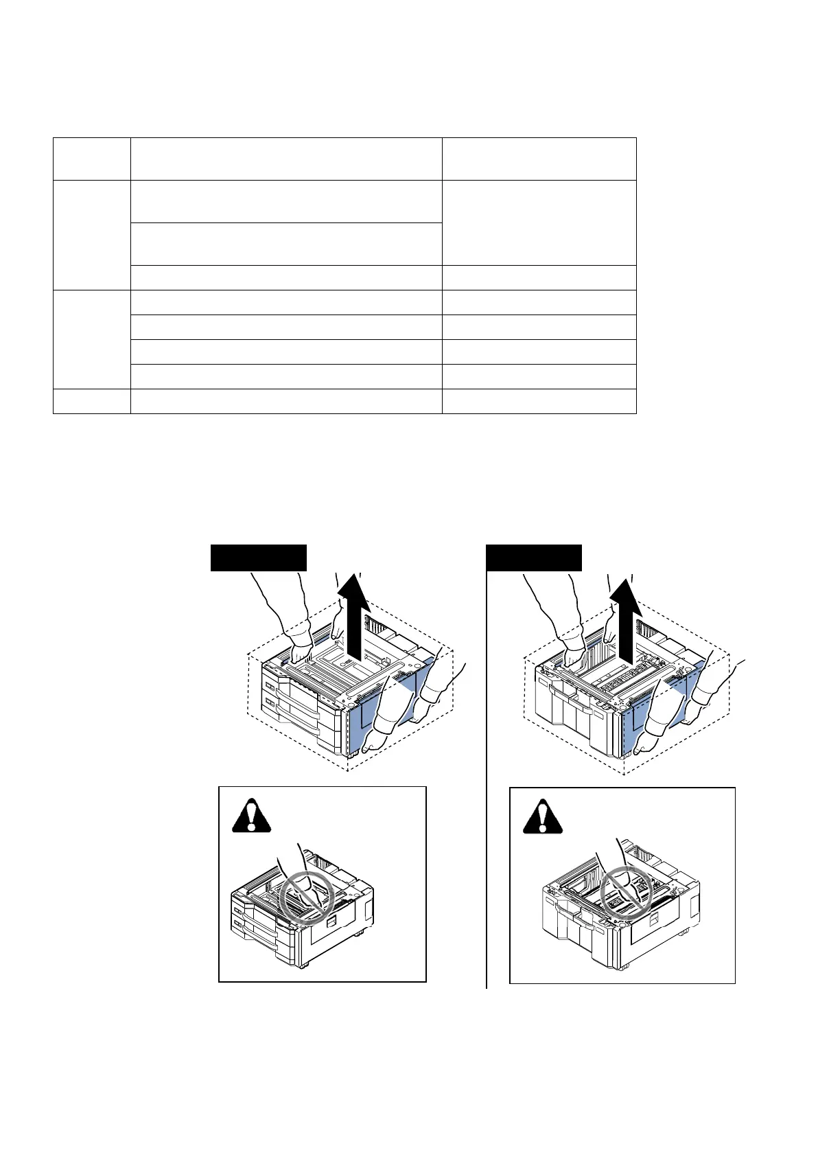 When carrying the paper feeder (PF-730(B)/740(B)), hold the designated parts as shown in the figure.