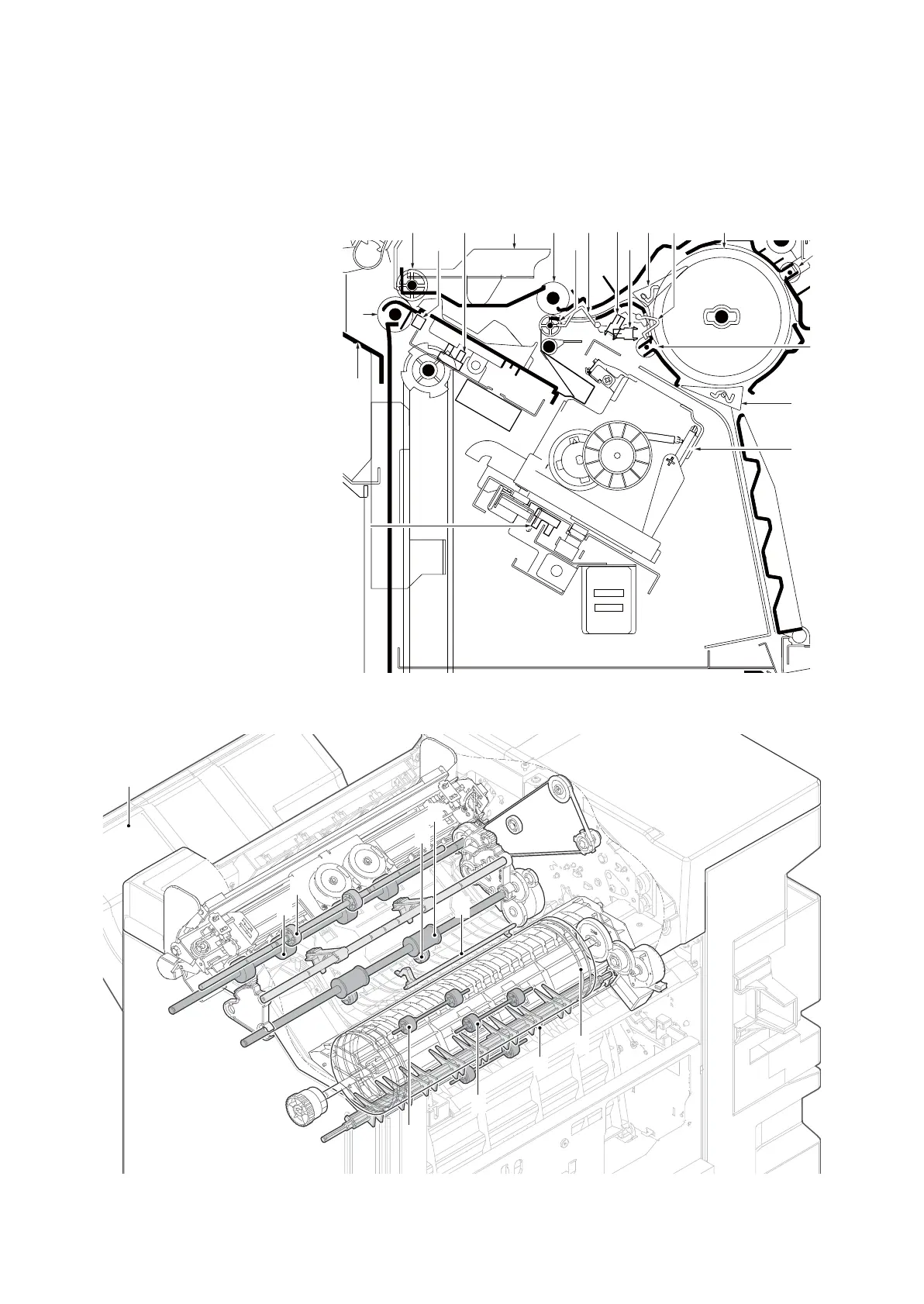 The finishing section consists of the parts below and the paper conveyed from the main unit is ejected to
