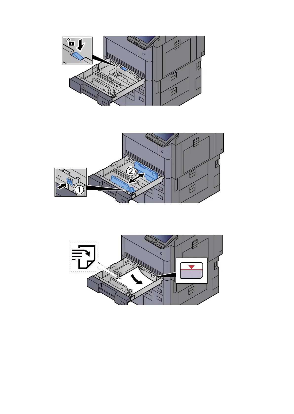 If paper is loaded without adjusting the paper length guide and paper width guides to the paper size to use, the paper