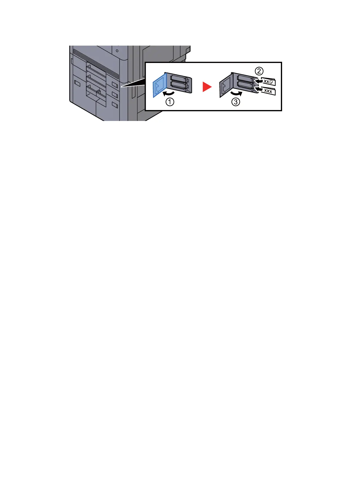 10. Insert the paper size and media type sheet(cassette 1 and cassette 2 only).
