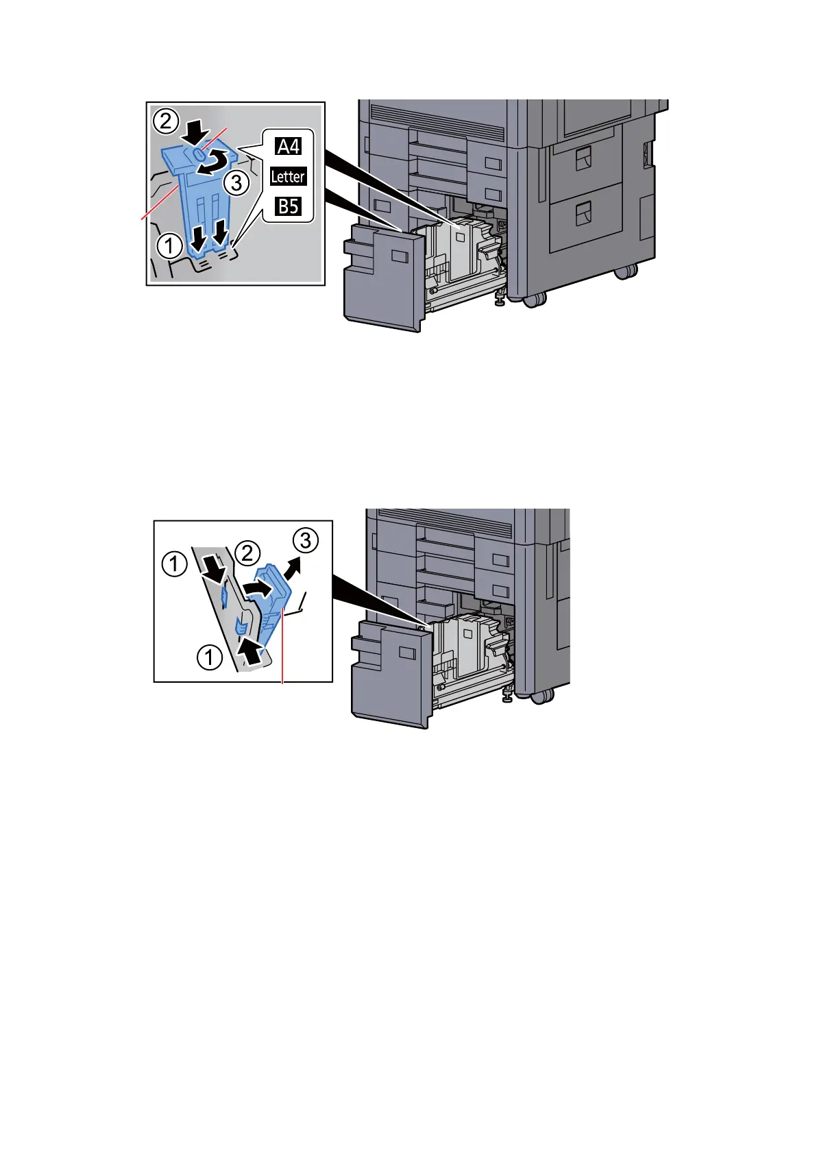 Check if the top of paper size guide A(a) matches the usable paper size, install the fixed material(b) and lock turning.