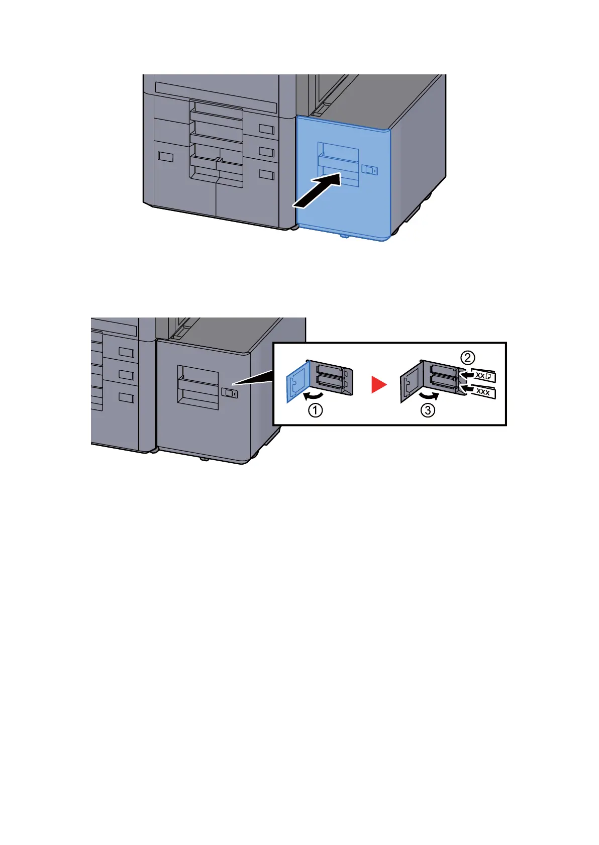 4. Insert the paper size sheet and media type sheet.