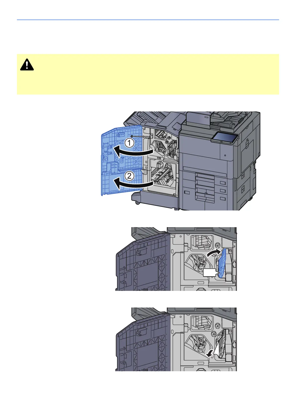 Open the finisher front cover 1 and 2.