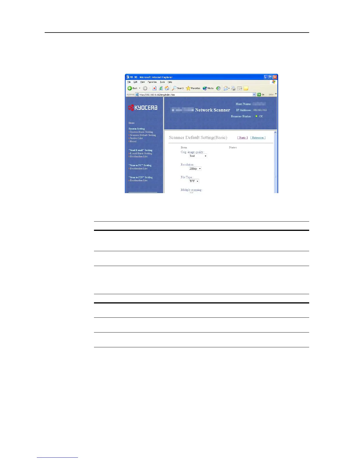 Configure image scanning related default settings for the scanner. The settings items are Basic