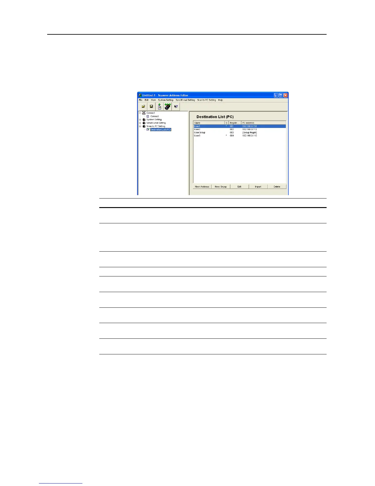 Delete Button Click this button to remove the selected destination PC address/group data.