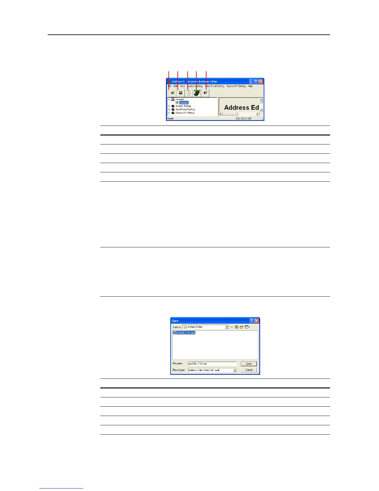 1 Open Button Specify and open an Address Editor file.