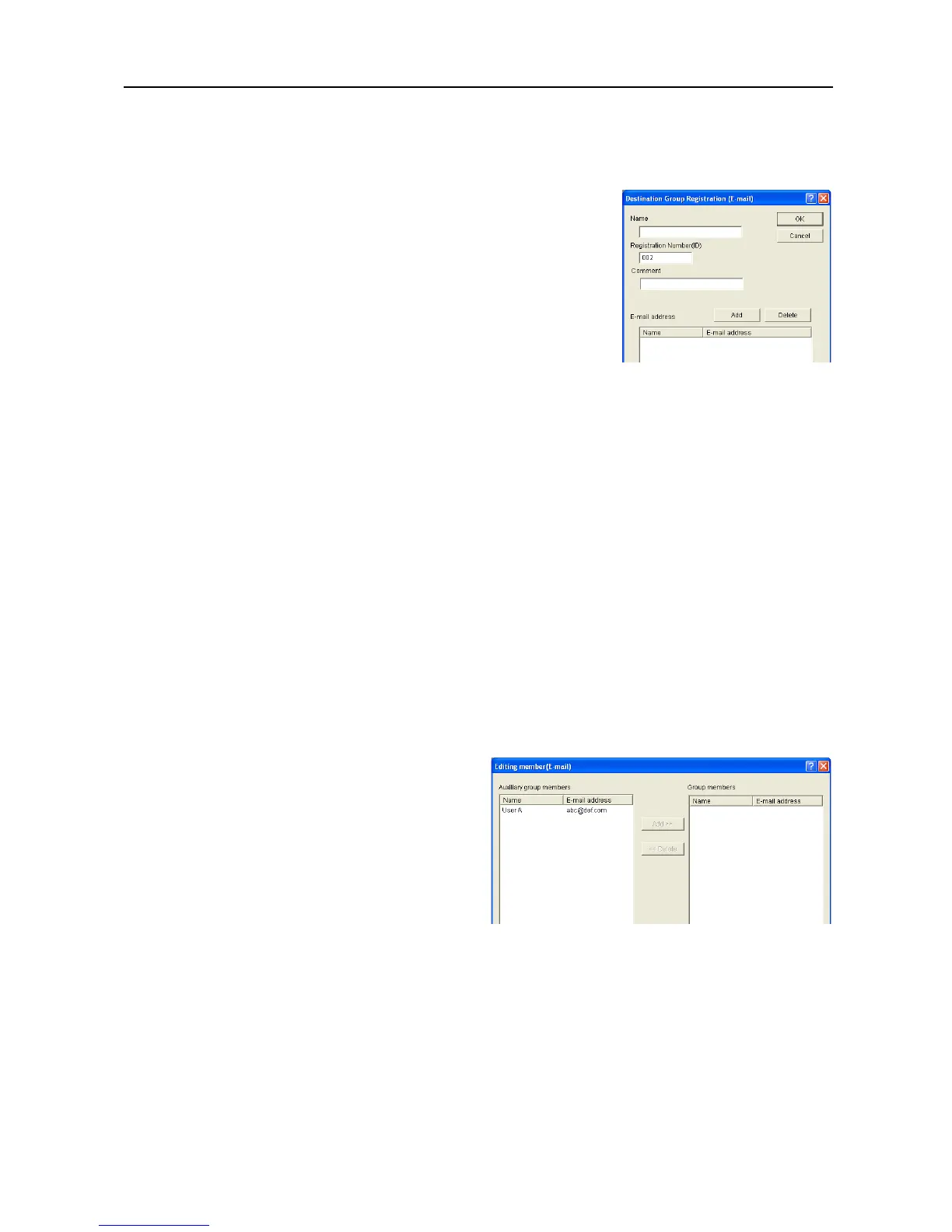 e-mail destination group, use the Destination Group Registration (E-mail) dialog box.