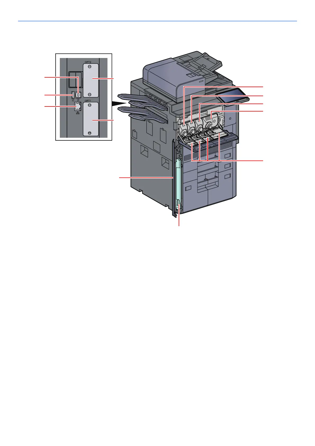 Installing and Setting up the Machine > Part Names (Connectors/Interior)