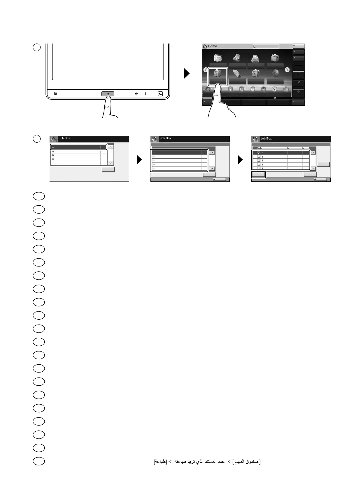 [Job Box] > Select the document to print > [Print]