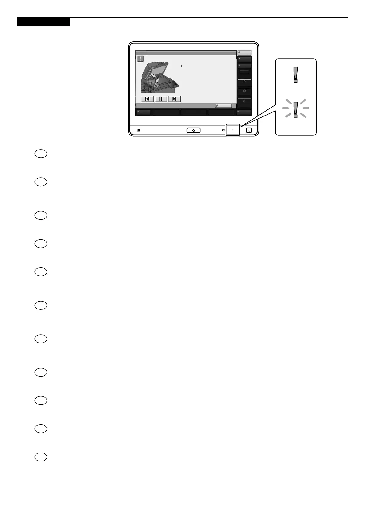 the operation panel will light up or flash. Follow the instructions on the screen to clear the error. For details,