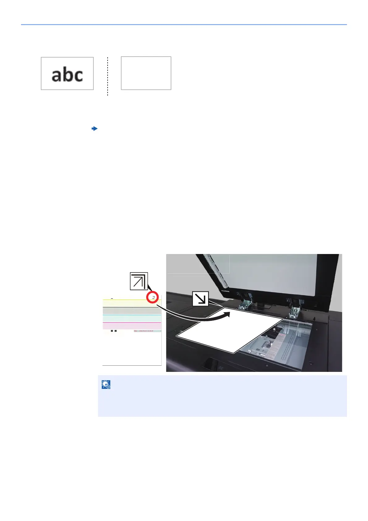 3 Align the mark on the chart arrow with the mark on the upper left corner of the platen glass.