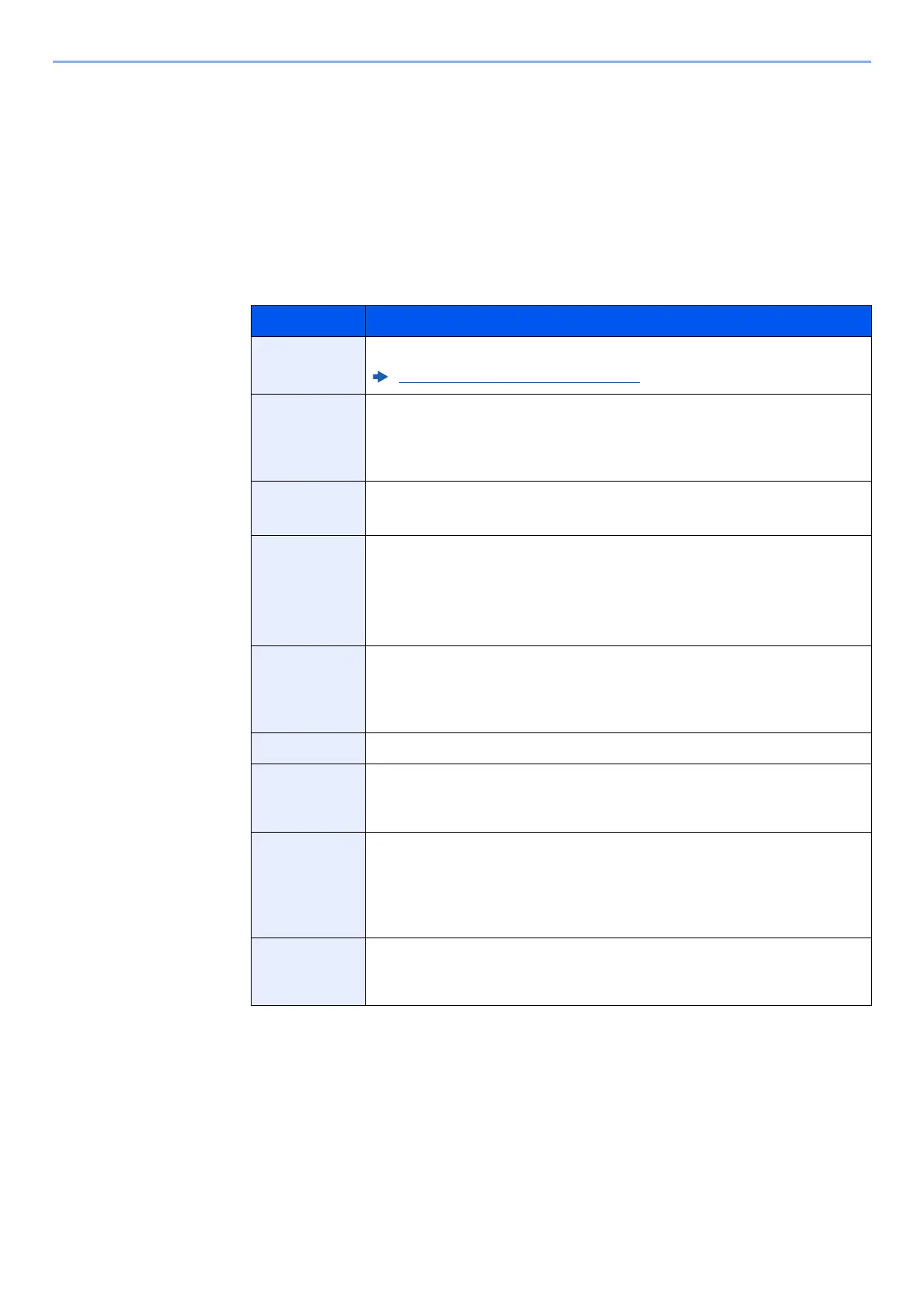 The table below lists the items to be set.