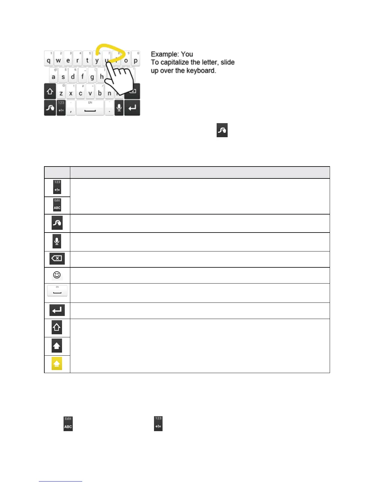 SomeofthekeysontheSwypekeyboardaregivenbelow: