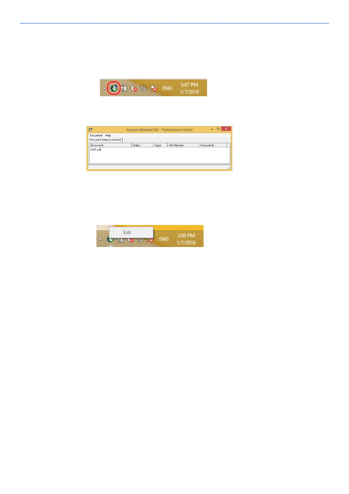 Once a fax transmission starts being processed, a Transmission Control icon will be displayed in the Windows Task Bar.