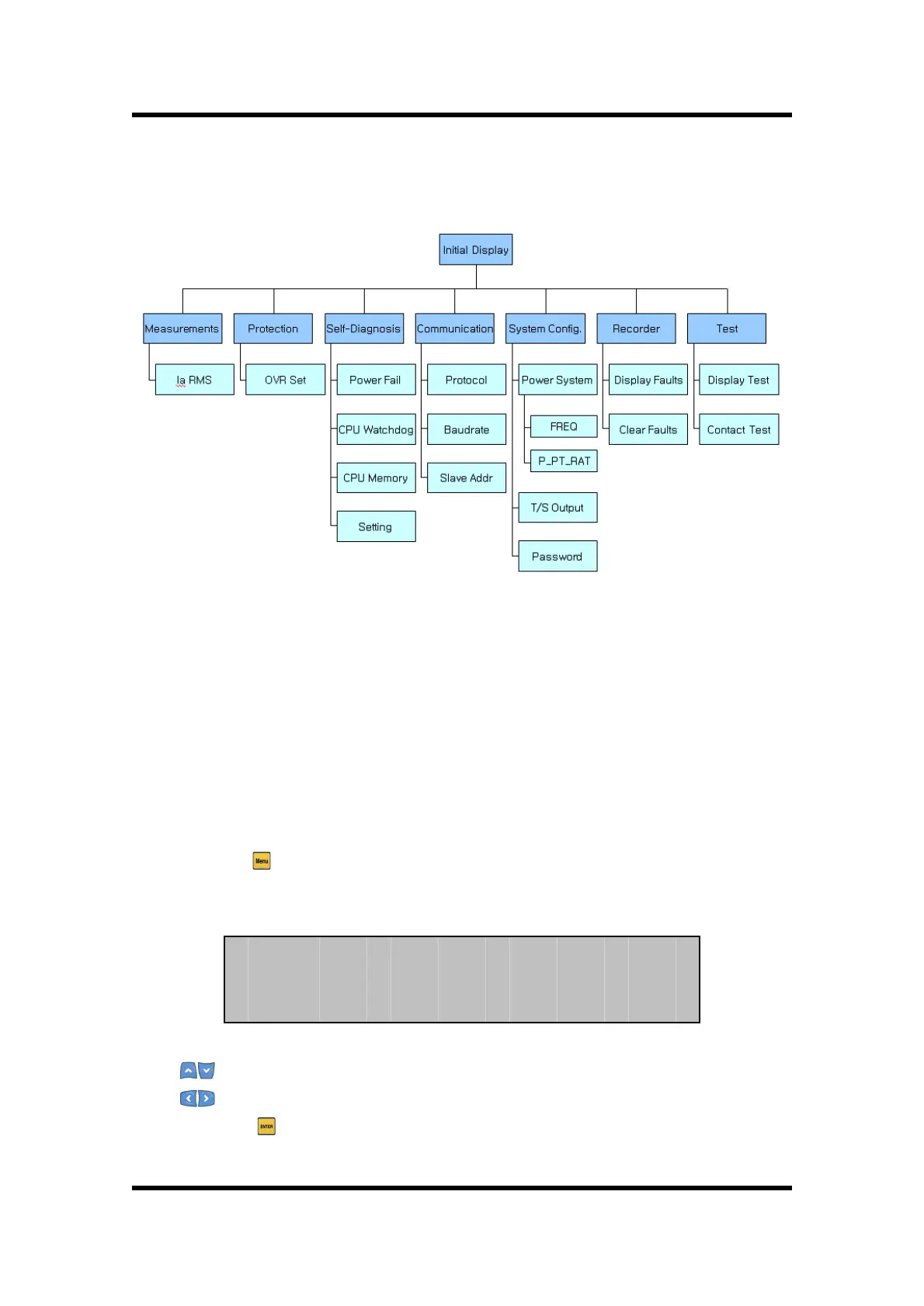 7 categories of Measurement, Protection, Self-Diagnosis, RS-485 Comm., System Config,