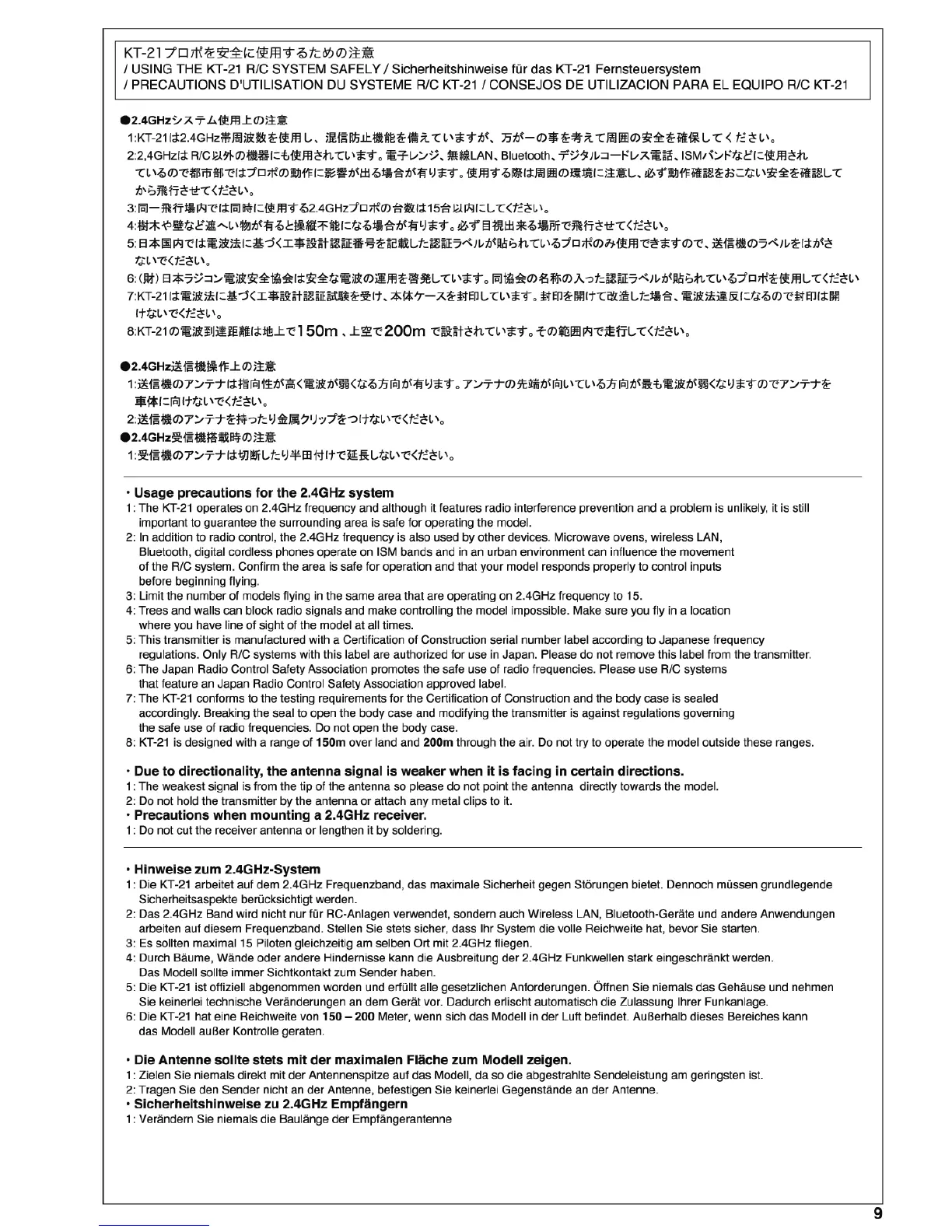 Kyosho Blizzard SR - KT-21 System Precautions