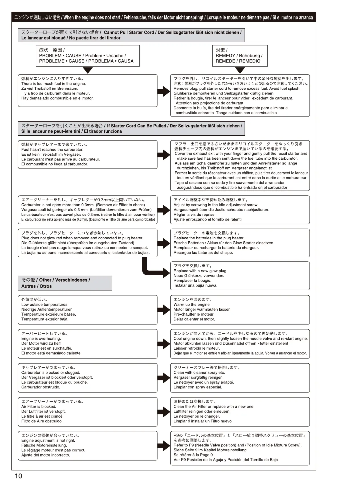 Kyosho DBX - Troubleshooting Engine Start Issues; Engine Fails to Start; Starter Cord Problems; Fuel System and Air Filter Issues