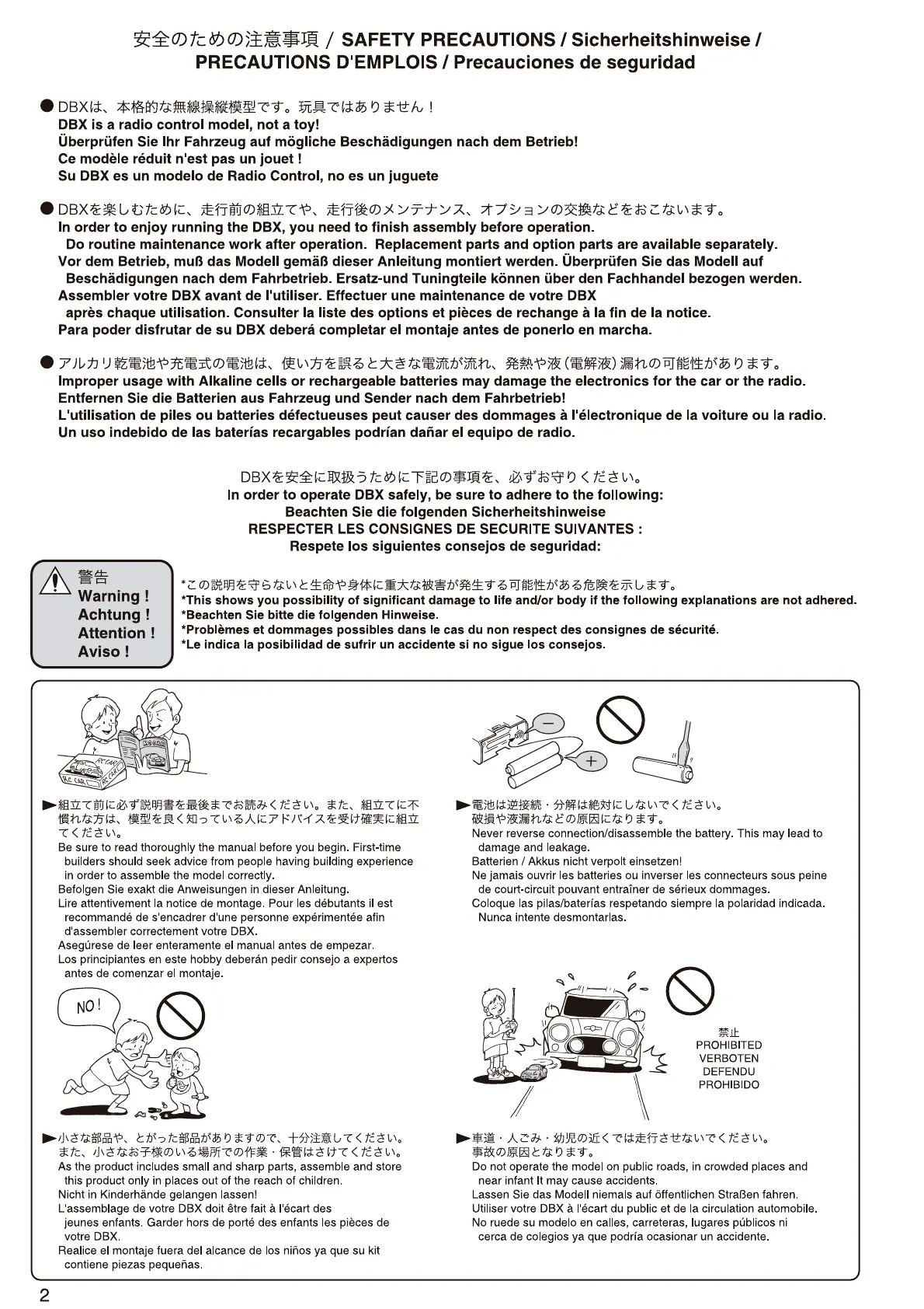 Kyosho DBX - Operational Safety Rules; Battery Safety and Handling; Prohibited Operation Locations; Parental Guidance and Small Parts