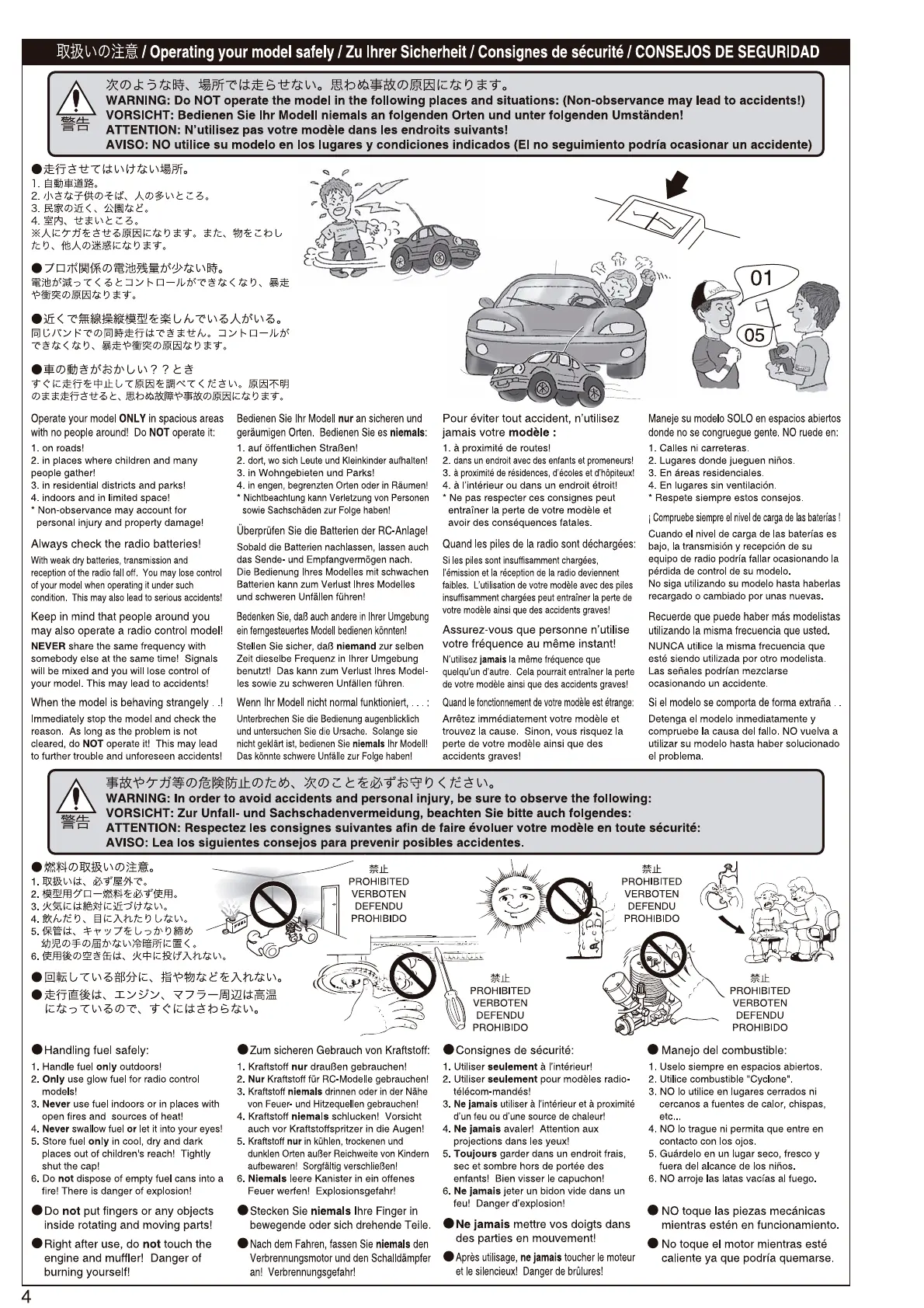 Kyosho DBX - Operation Restrictions and Fuel Safety; Forbidden Operating Environments; Fuel Handling and Safety; Mechanical Hazards Awareness