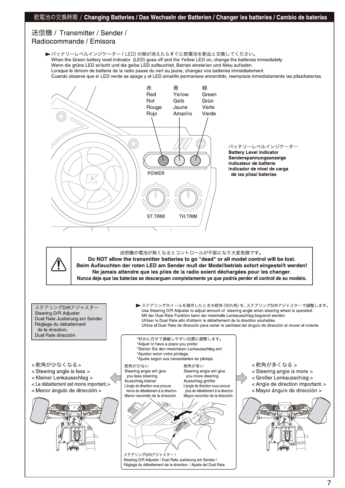 Kyosho DBX - Battery Status and Steering Control; Battery Level Monitoring; Transmitter Battery Depletion Warning; Steering Dual Rate Adjustment