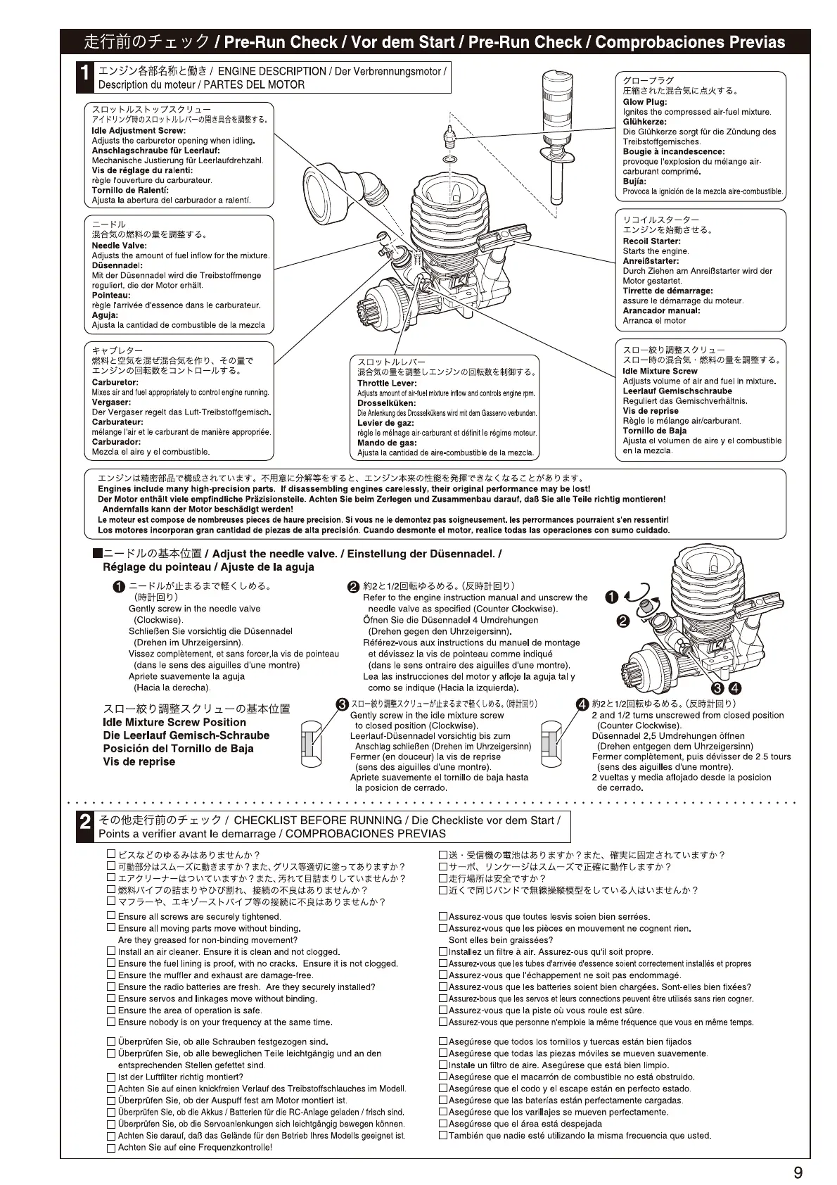 Kyosho DBX - Engine Basics and Pre-Operation Checks; Engine Part Functions; Basic Engine Adjustments; Pre-Run Inspection Checklist