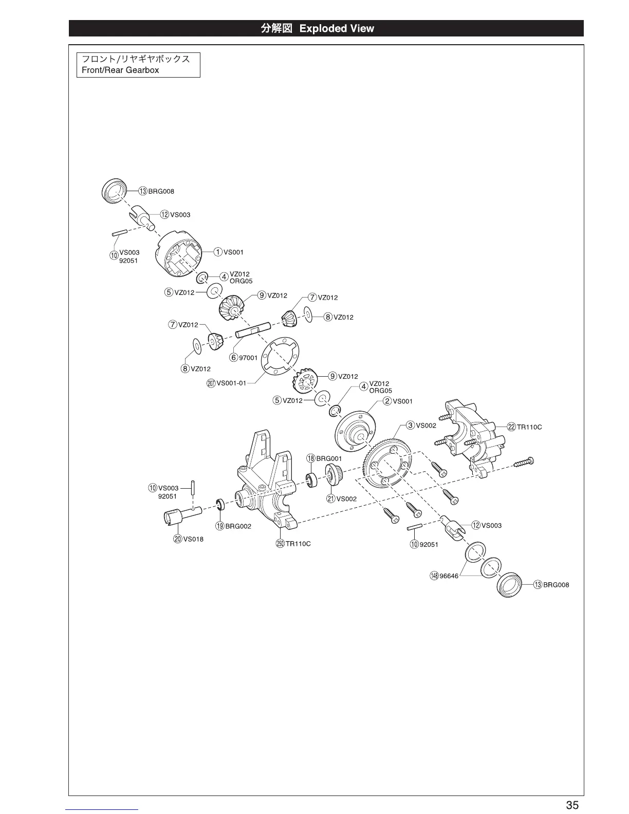 Kyosho DRX - EXPLODED VIEWS; Gearbox, Suspension, and Steering Views