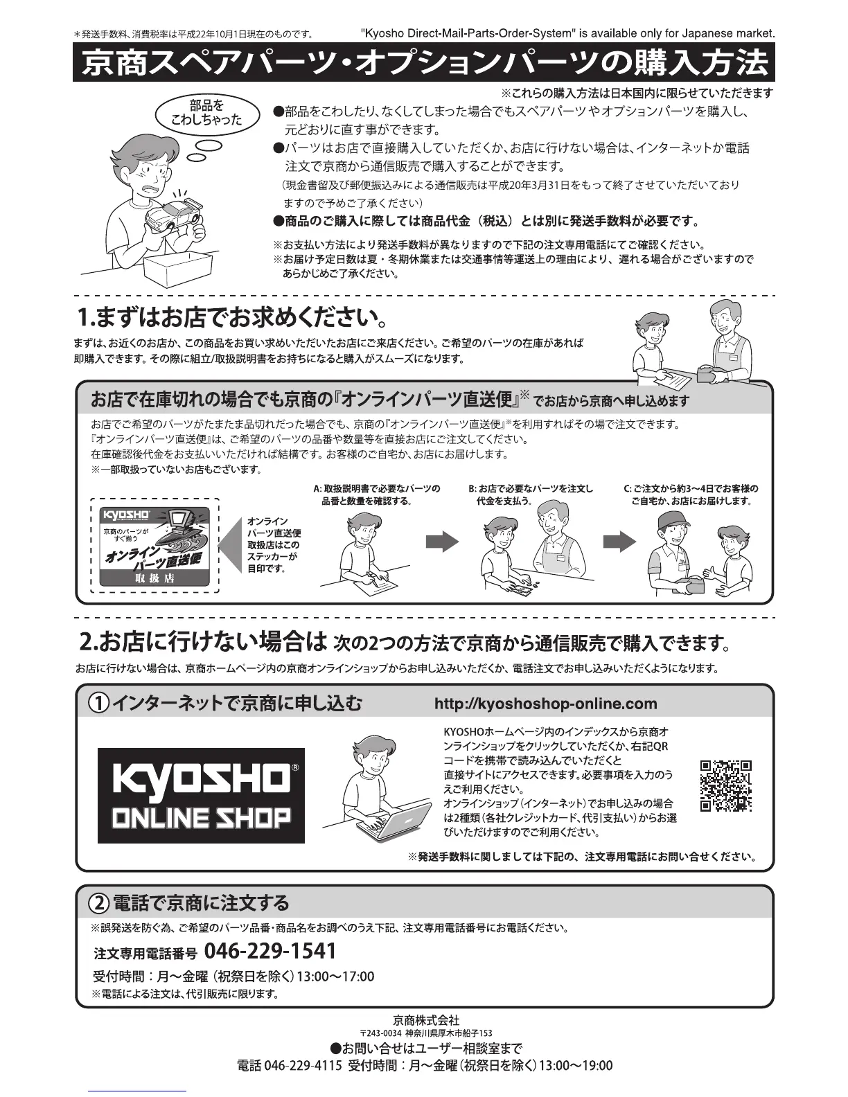 Kyosho DRX - PURCHASE AND SUPPORT INFORMATION; How to Purchase Kyosho Parts