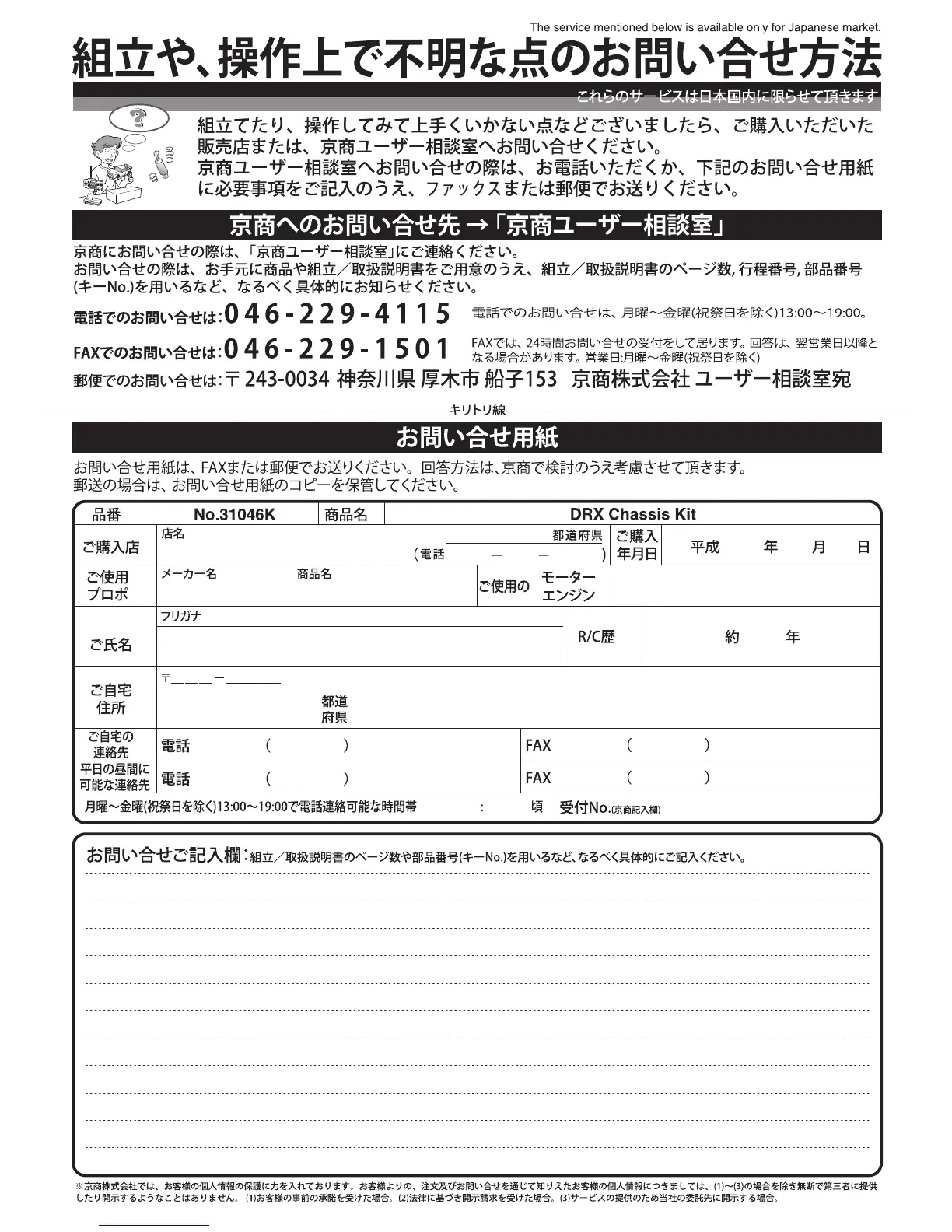 Kyosho DRX - Customer Inquiry and Support Procedures