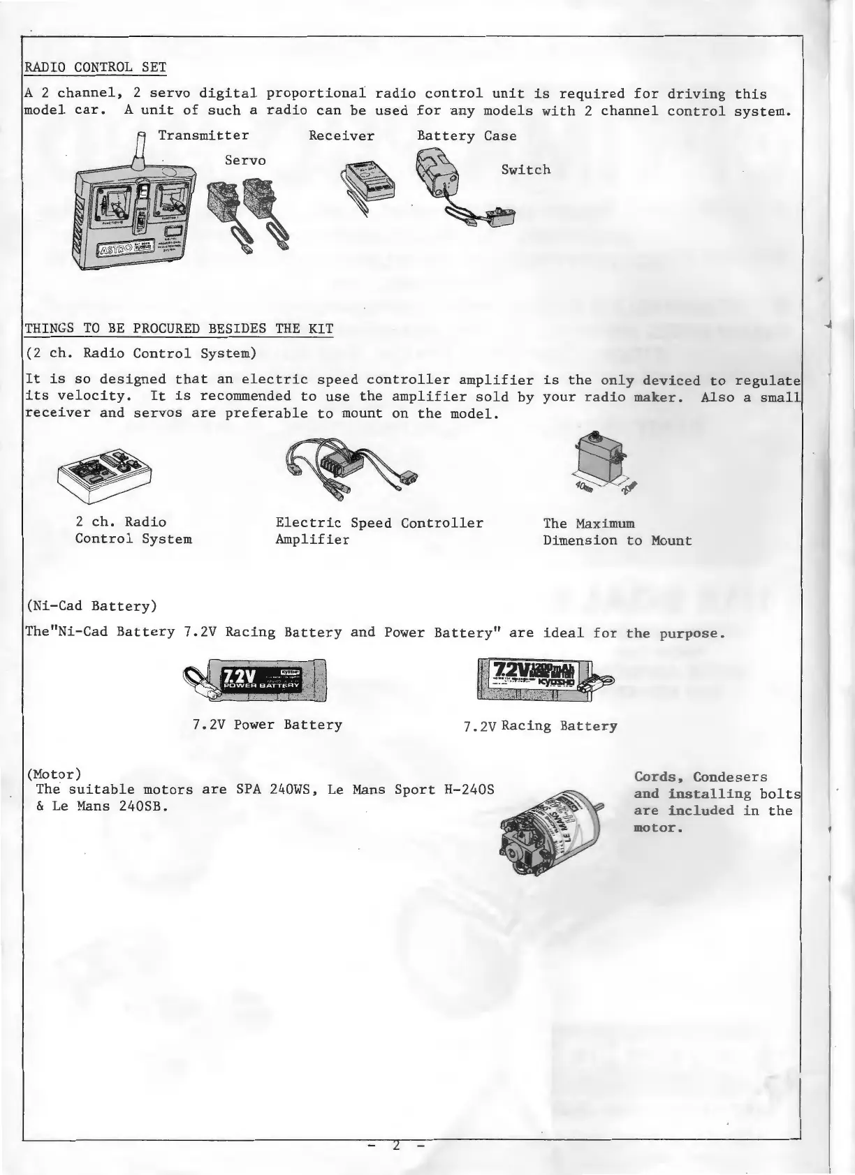 Kyosho Optima Pro 4WD - Radio Control Set; Required Components