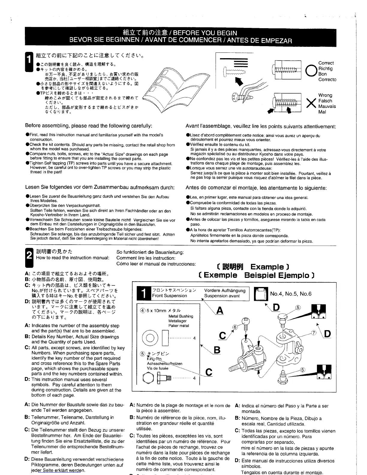 Kyosho Perflex - Pre-Assembly Precautions; General Assembly Warnings; How to Read the Instruction Manual