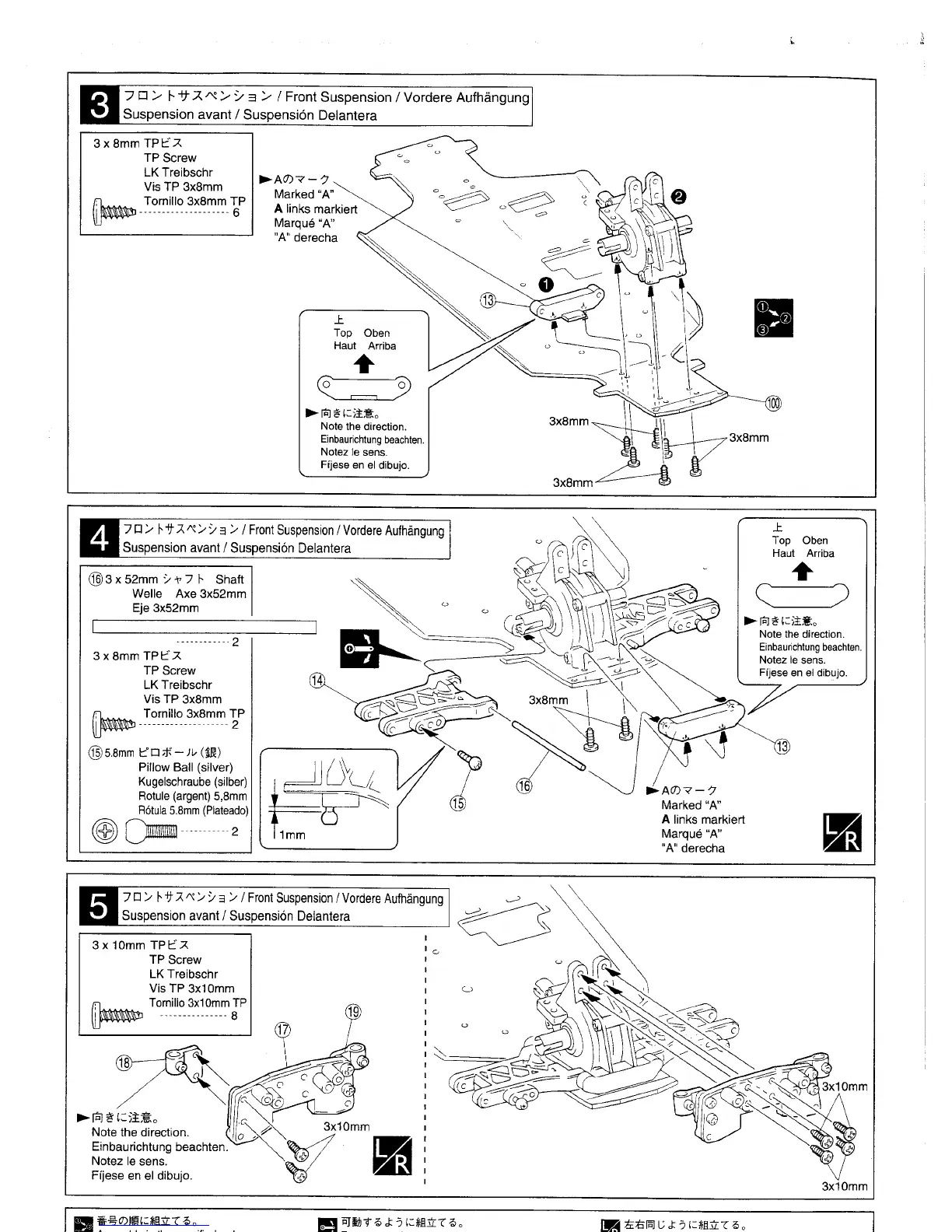 Kyosho Perflex - Front Suspension Assembly - Part 1; Front Suspension Assembly - Part 2; Front Suspension Assembly - Part 3