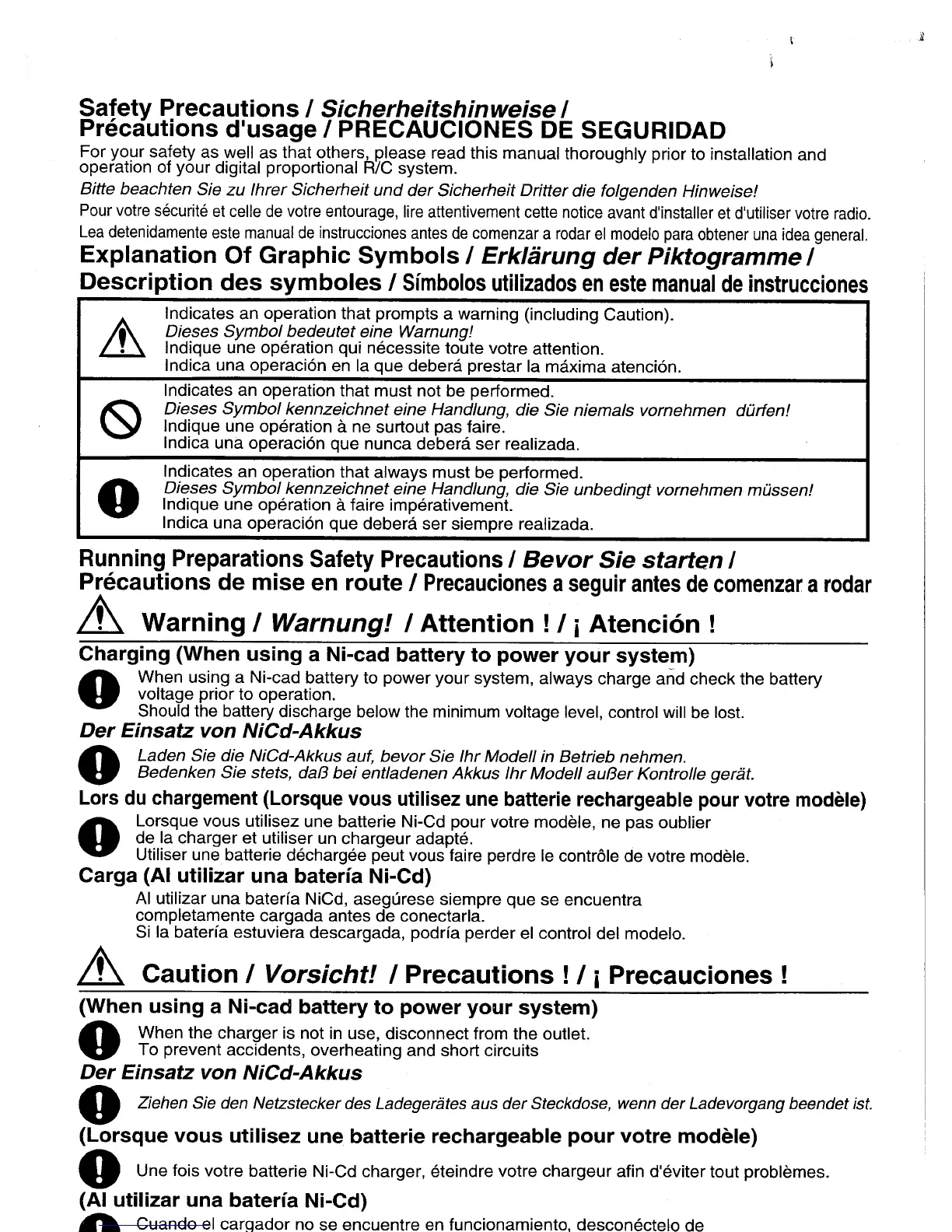 Kyosho Perflex - General Safety Precautions; Explanation of Graphic Symbols; Running Preparations Safety Precautions