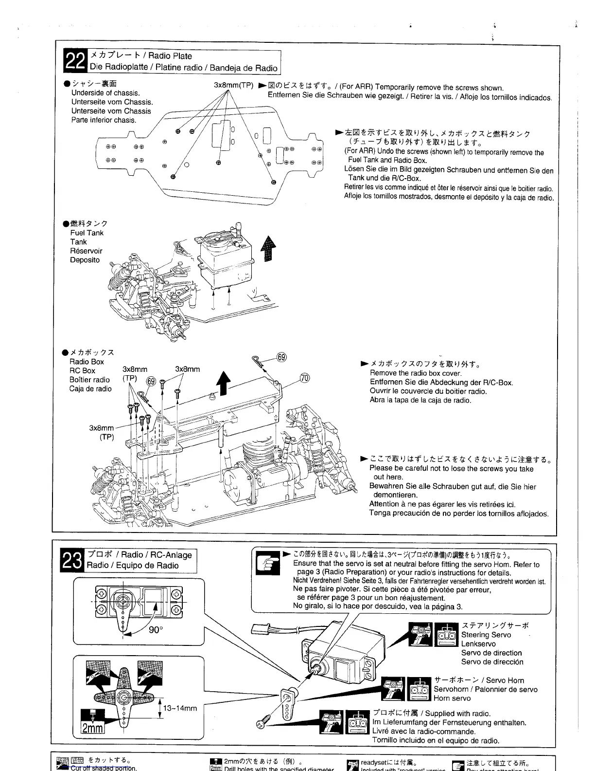 Kyosho Perflex - Chassis Components and Radio Installation; Radio Plate and Component Removal; Servo Horn Installation to Servo