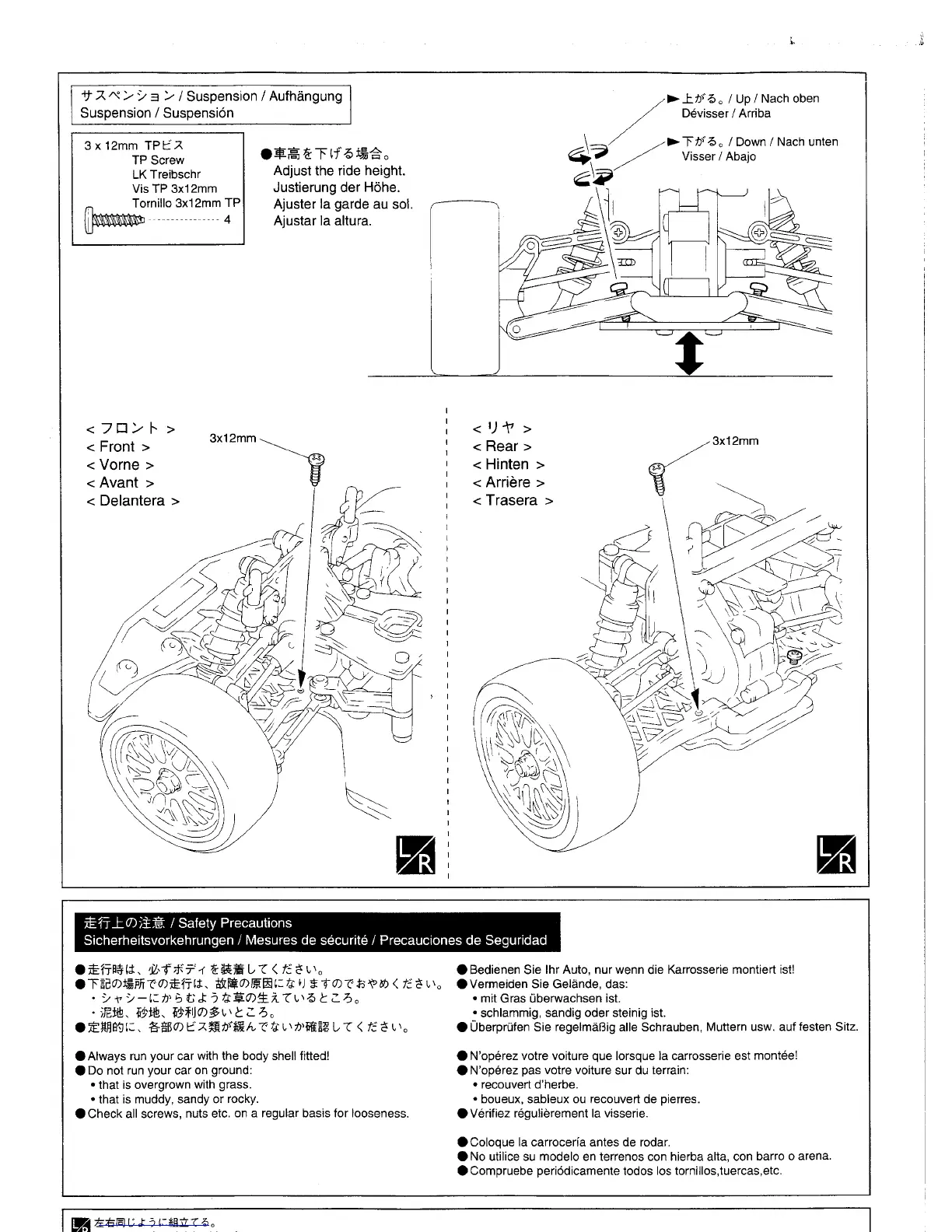 Kyosho Perflex - Suspension Adjustment and Running Safety; Suspension Ride Height Adjustment; Running Safety Precautions
