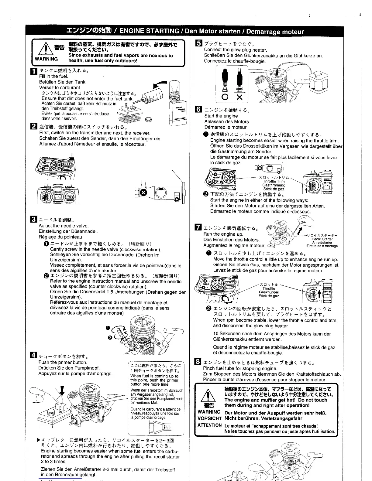Kyosho Perflex - Engine Starting Procedure; Fueling and Initial Power-Up; Needle Valve and Glow Plug Heater Setup; Engine Starting and Warm-up