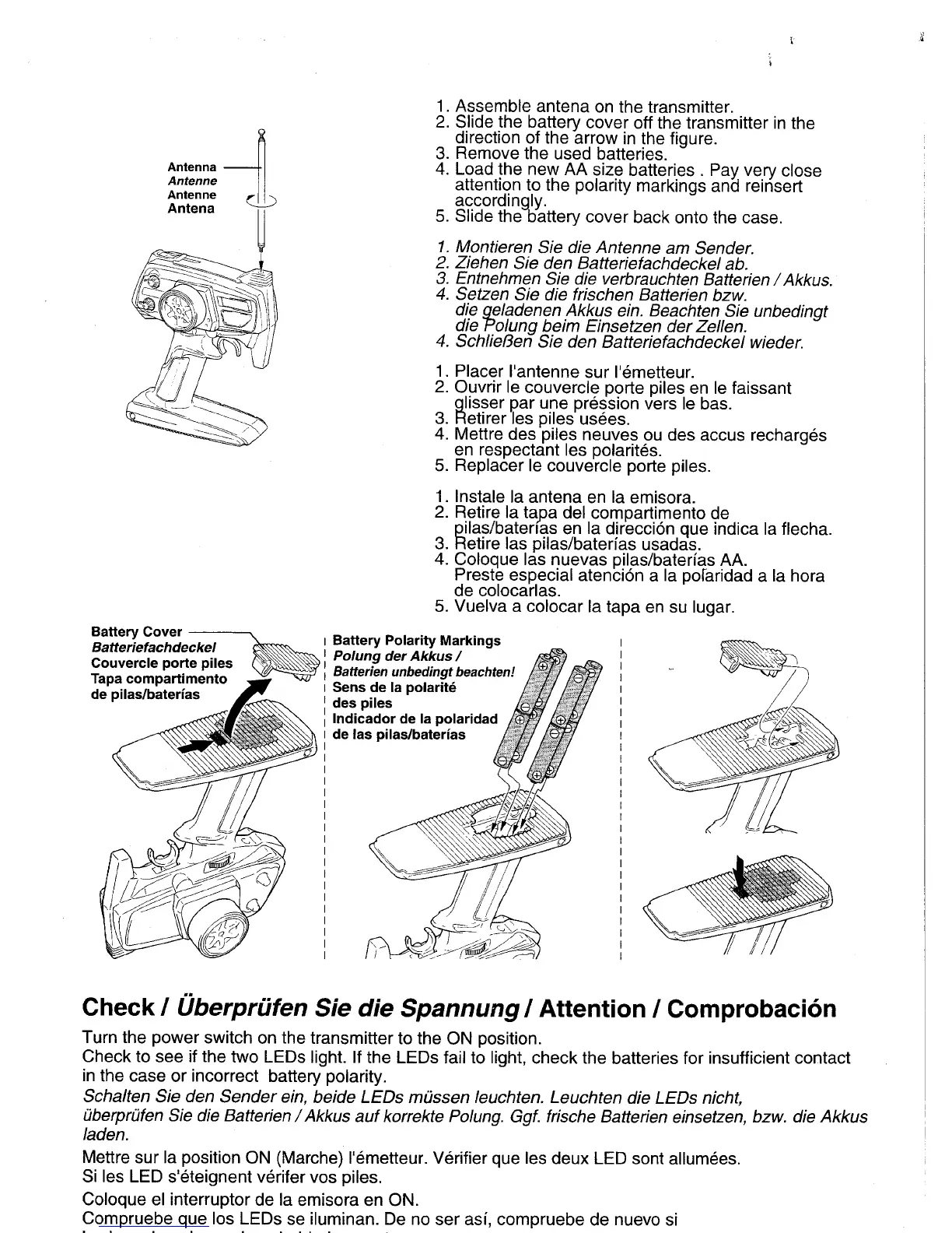 Kyosho Perflex - Transmitter Setup and Checks; Transmitter Assembly and Battery Installation; Power and Battery Status Check