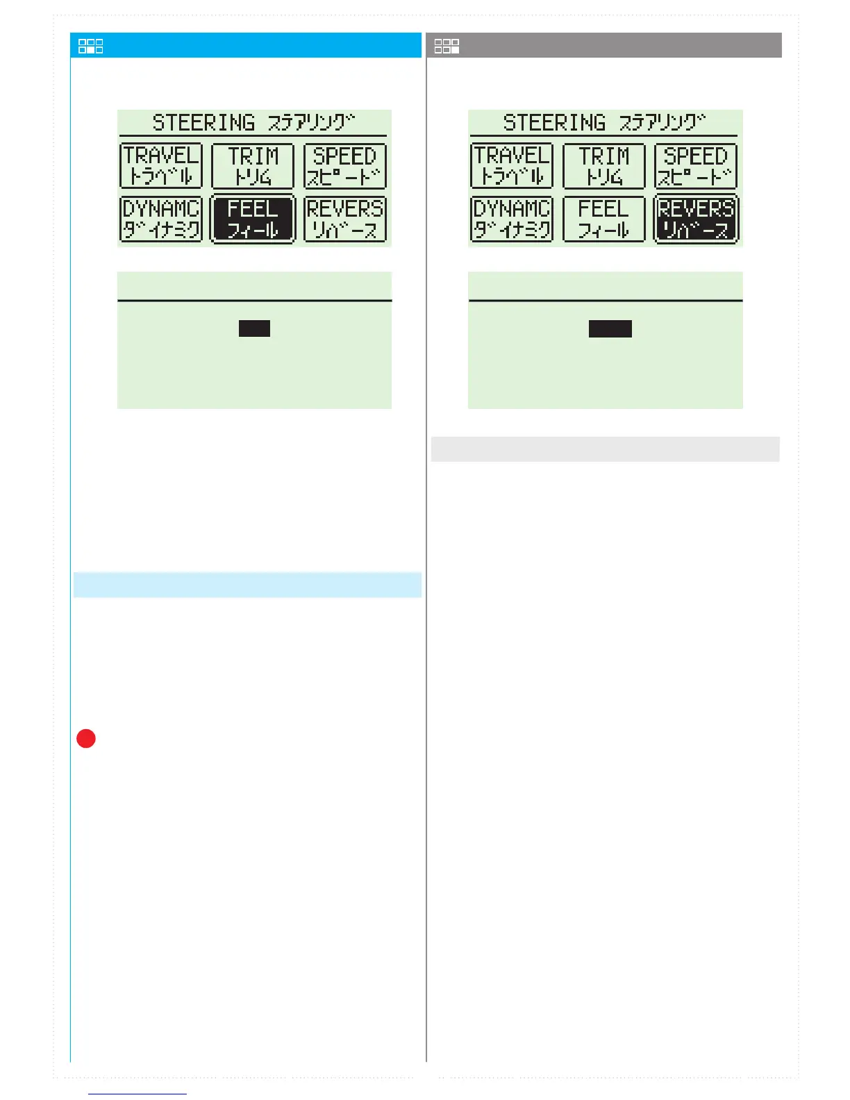 FEEL Steering feel MENU REVERSE Steering Reverse