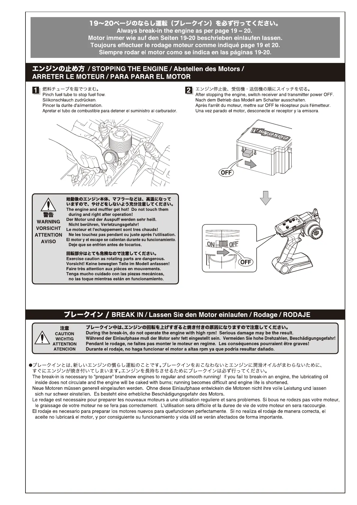 Kyosho Syncro KT-200 - Engine Operation and Maintenance; Stopping the Engine; Understanding Engine Break-In