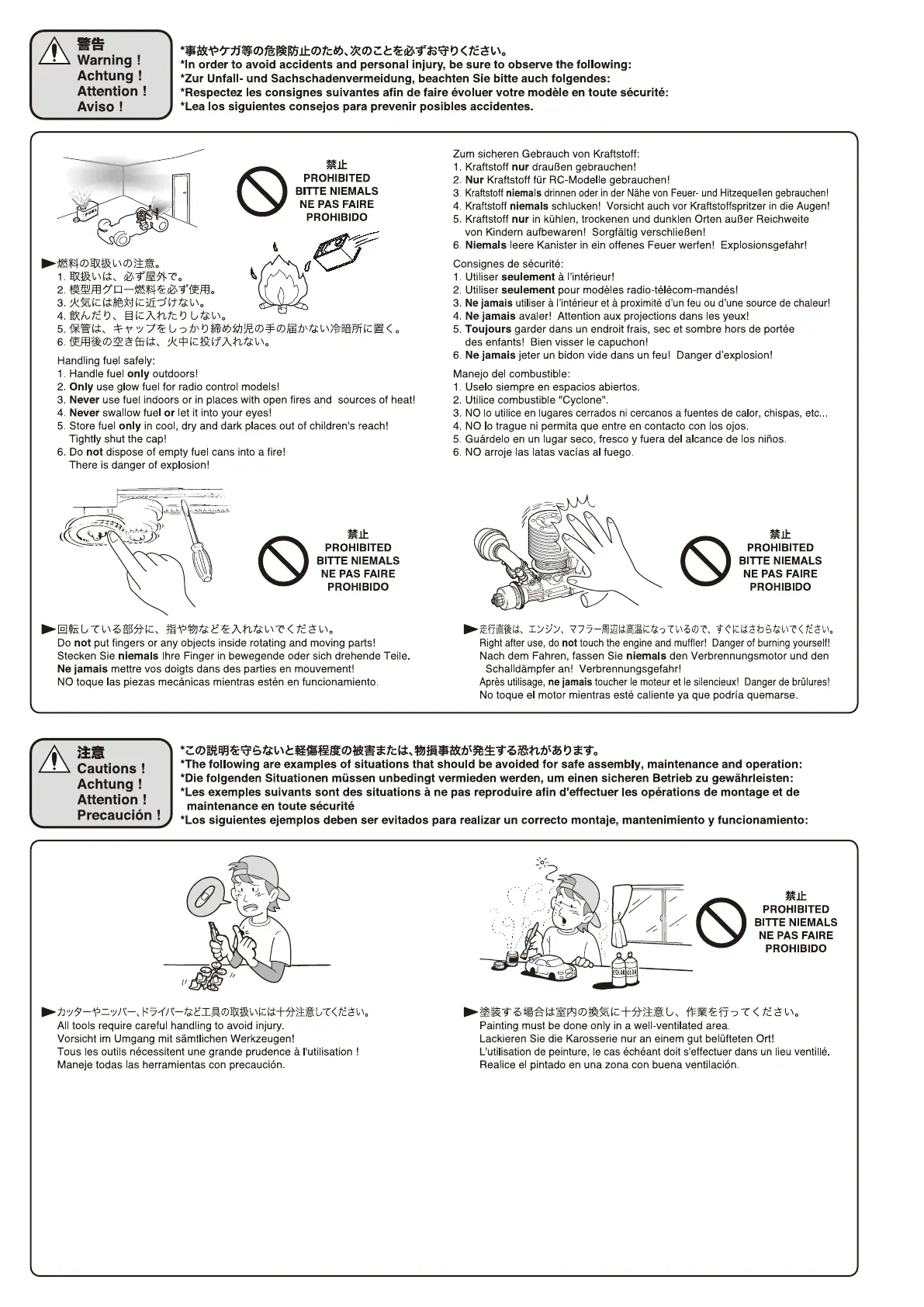 Kyosho Syncro KT-200 - Hot Engine and Exhaust Warning; Fuel Handling Safety; Safe Fuel Storage and Use