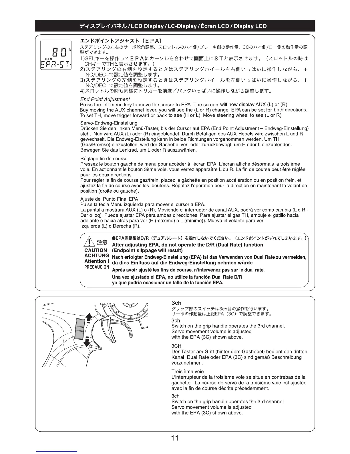 Kyosho Syncro KT-201 - LCD Display Adjustments; End Point Adjustment (EPA); 3 rd Channel (3 ch) Operation