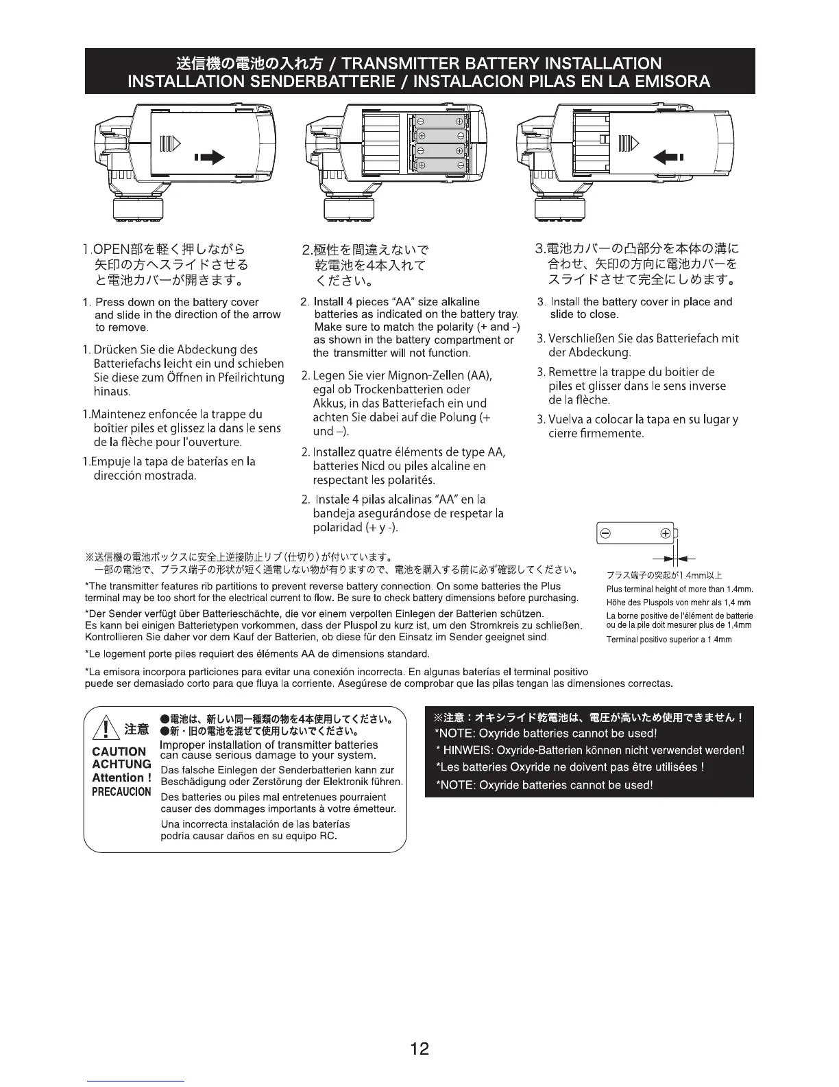 Kyosho Syncro KT-201 - Transmitter Battery Installation; Battery Installation Steps; Important Battery Cautions