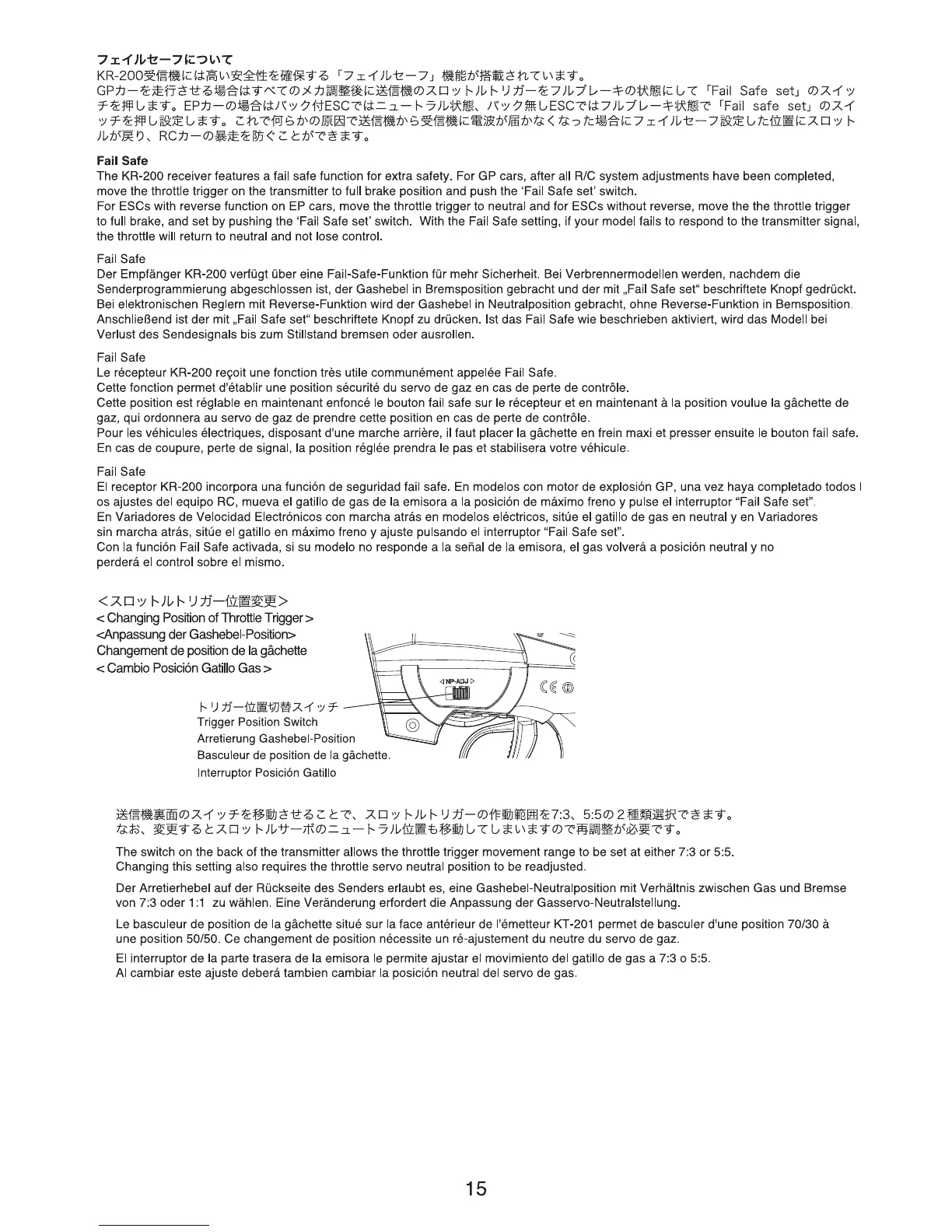 Kyosho Syncro KT-201 - Fail Safe Function; Setting the Fail Safe; Throttle Trigger Position Adjustment