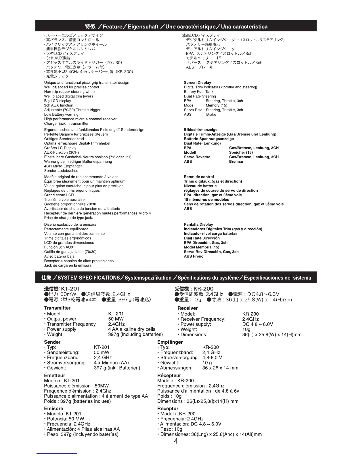 Kyosho Syncro KT-201 - Feature; System Specifications; Screen Display
